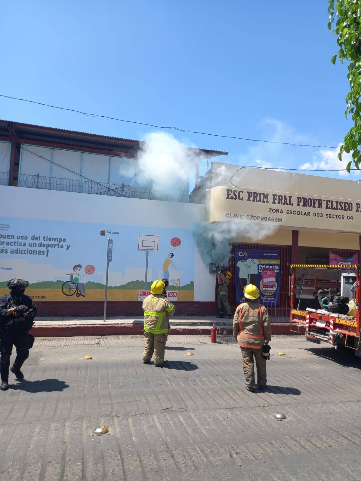 -Evacúan a estudiantes tras incendio; fallas eléctricas ponen en la mira el estado de las escuelas Esteban León / Tuxtla Gutiérrez Un incendio se registró la mañana de este miércoles en la Escuela Primaria Federal Profesor Eliseo Palacios, ubicada en la zona oriente de Tuxtla