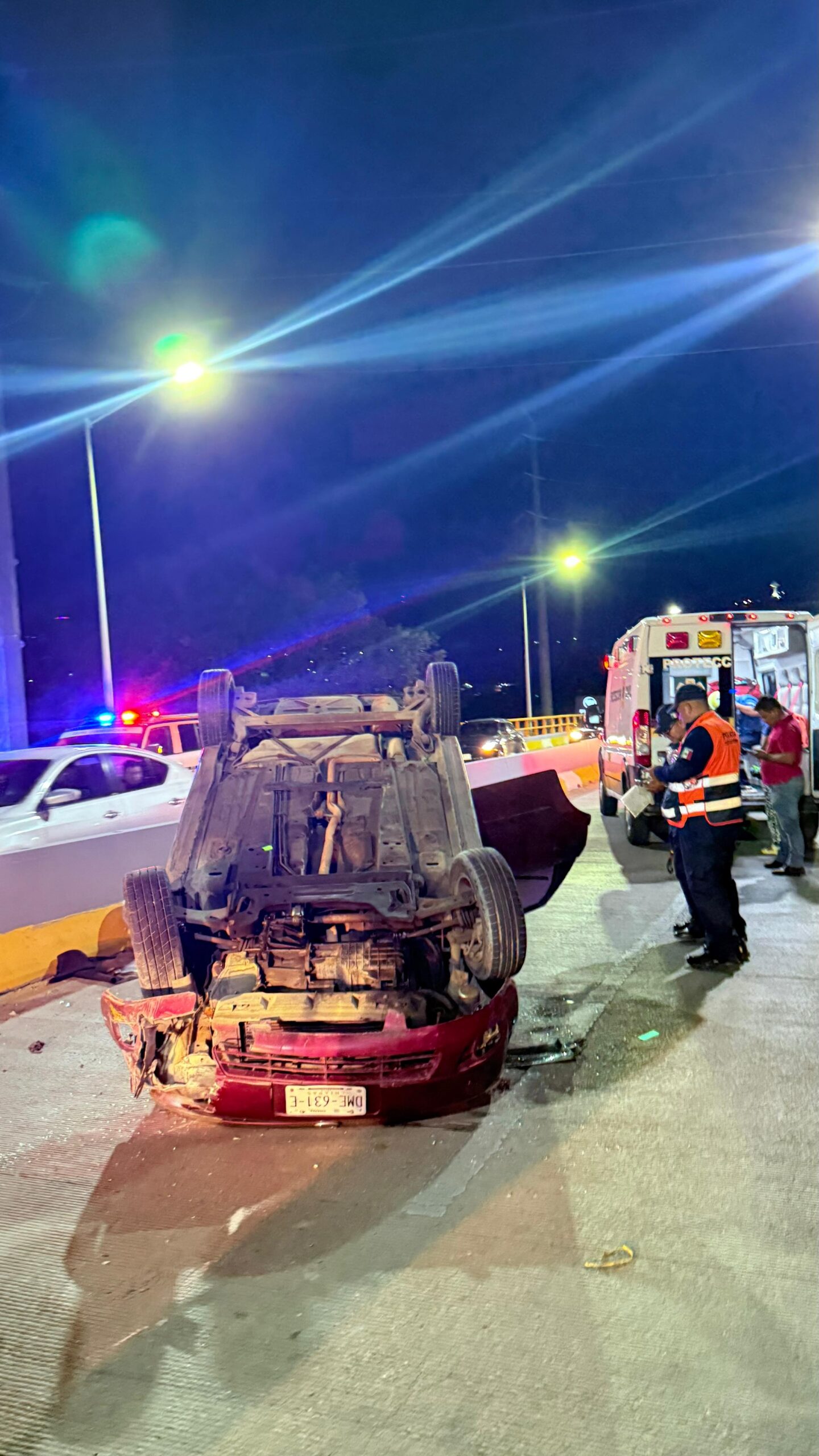 -El automóvil se impactó contra el muro de contención que divide ambos carriles. La fuerza del choque ocasionó que la unidad terminara con el toldo a ras de suelo